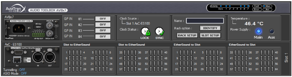 AVS-Monitorは、EtherSoundネットワークをリモートで設定、制御、監視することができ、異なるスロットに挿入されたカードの特定のパラメータを管理するための拡張制御ページを提供します。
