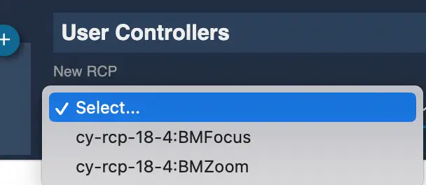 cam FocusポートからZoomポートへはUSB-C to USB-Cケーブルで接続し、ZoomポートからRIO/NIO/RCPへはloopUSB-C to USB-Aケーブルで接続します。cam通常どおりカメラとレンズを設定します。右側のパネルにあるカメラ設定で、[ユーザーコントローラー]セクションを見つけて、BMFocusと BMZoomの両方を選択します。