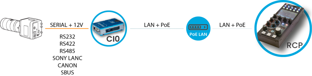 CY-CI0 provides multiple flexible ports to interface serial based or analog based equipment over IP. It makes any non-IP camera or equipment discoverable and usable on IP networks using current workflows. The CI0 features 2 multi-protocol ports compatible with any serial based camera, including Sony legacy and LANC. A wide range of cables are available for most cameras.