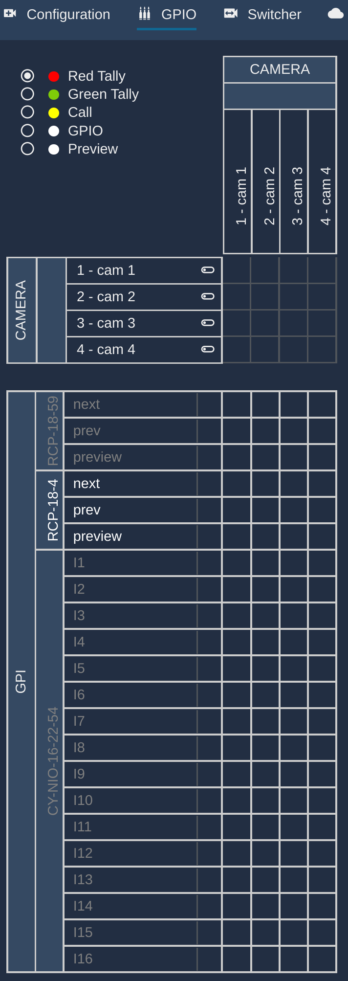 NIOは、タリー信号と制御信号用の16個のGPIOチャンネルを提供するネットワークベースのI/Oデバイスです。イーサネット、WiFi、または4G経由でタリー信号を送信できるため、専用ケーブルは不要です。